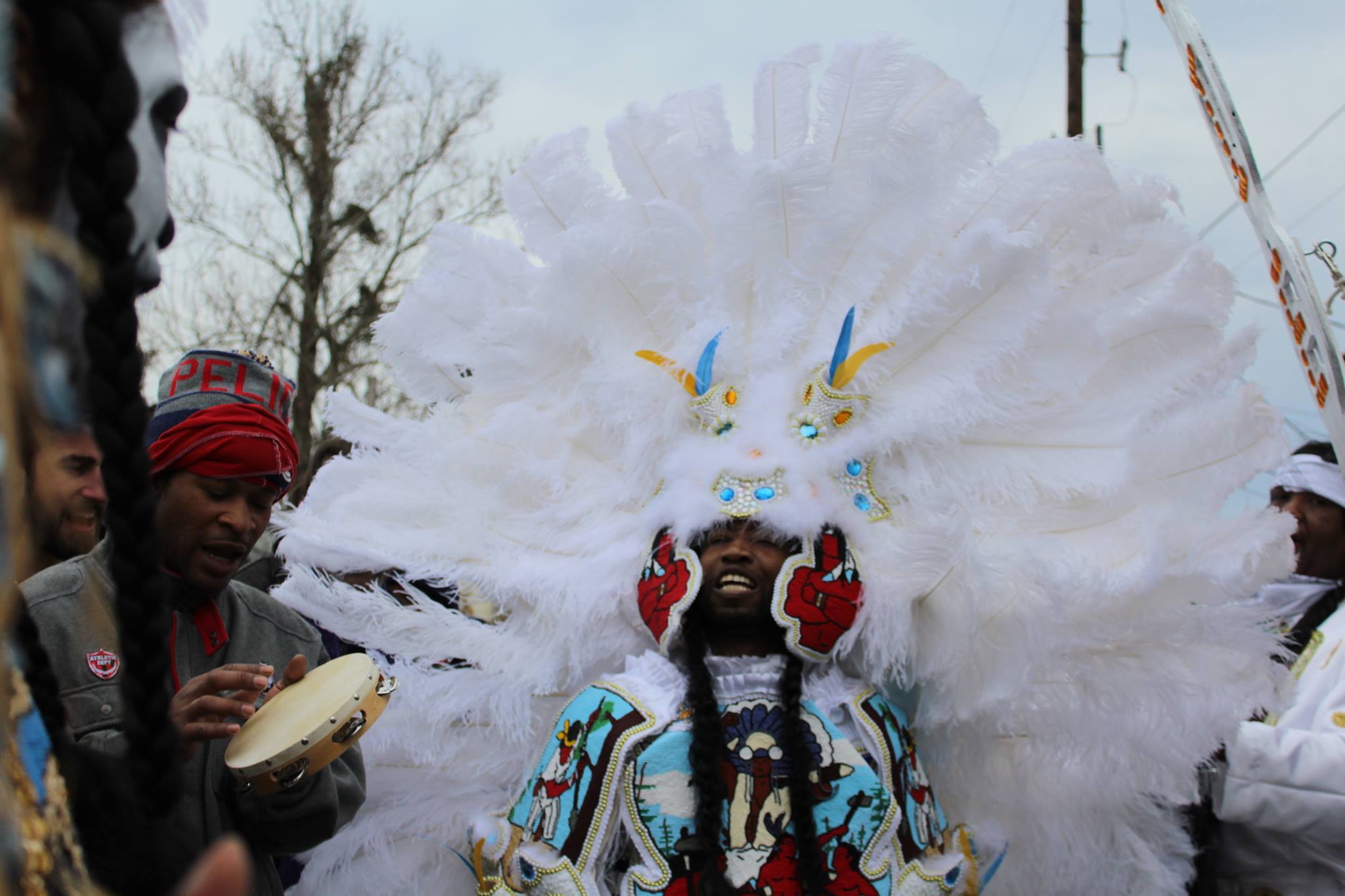 Mardi Gras Indians have been perfoming in New Orleans since before the mid-19th century and are influenced by African music, dance, and culture, Native American tradition, and the rich history of the Greater Caribbean. You can read more about the Mardi Gras Indians