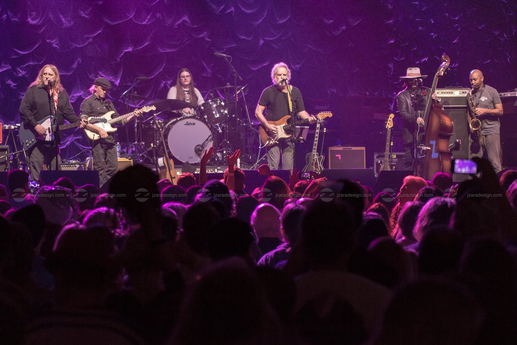 Johnson and Krauss harmonized their hearts out before George Porter Jr. got funky up on stage with Eric Krasno, John Medeski, Branford Marsalis, Terence Higgins and Marcus King. The night's energy leveled up at this point, with high-energy bouts of dancing populating the space. The legendary Bob Weir was up next and the dancing and good vibes just kept on truckin'.