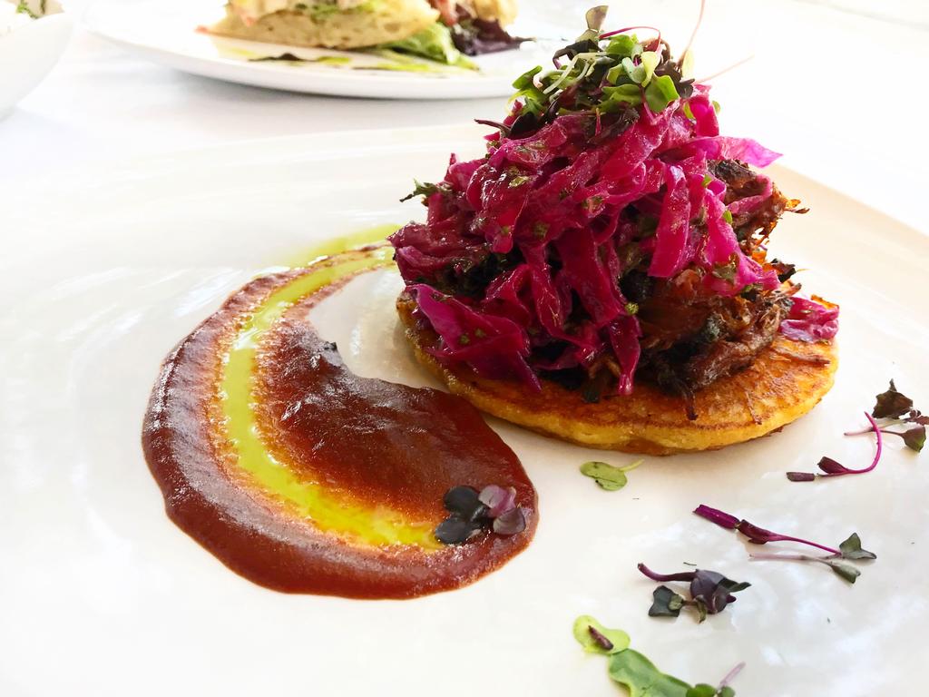 Never Blue is a hot spot darling in Hendersonville. (Their Instagram game will leave you hungry.) The style is adventuresome. It's modern, melting-pot Americana. They serve a lot of comfort foods spiced with flavors that make America great. They use locally sourced ingredients and pride themselves on delivering an amazing dining experience. Executive Chef Jesse Roque created a Restaurant Week menu heavy with my two favorite food groups: dairy and carbs (they even have lots of gluten free carbs). Candied jalapenos top their pimento cheese dip. I could have eaten a bowl of them. Korean barbecue pork nachos won over everyone at the table. Lump crab cakes brought smiles to full bellied bloggers, and I could have eaten my weight in their fluffy gnocchi. Never Blue’s dairy and carbs are worth the 30-minute or so drive from Asheville. The best part is that for dessert, you get to pick team mermaid or team unicorn.